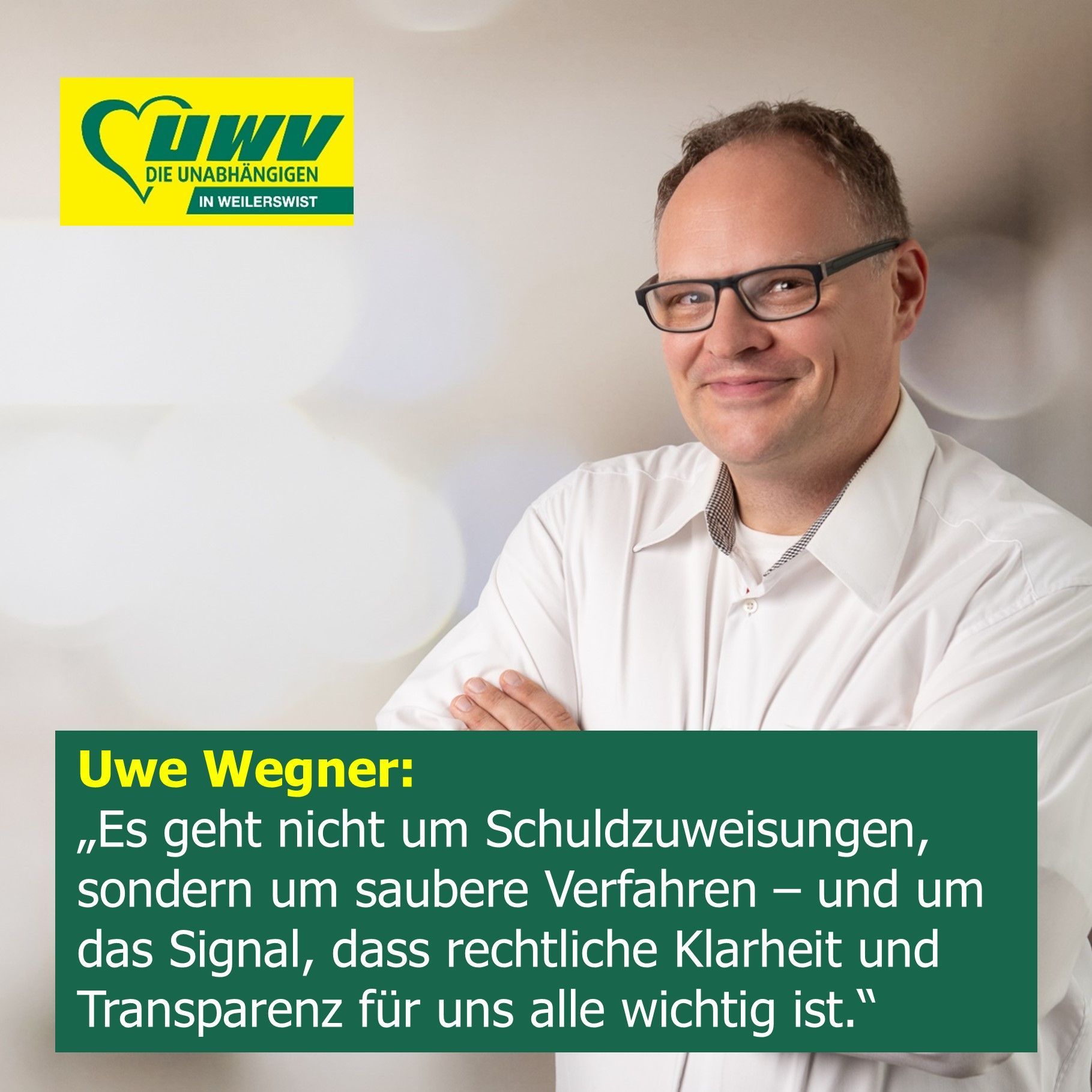 Damit bleibt die Frage, ob der damalige Ablauf in vollem Umfang rechtmäßig war, ungeprüft. Die UWV zeigt sich zurückhaltend, aber überzeugt: „Es geht nicht um Schuldzuweisungen, sondern um saubere Verfahren – und um das Signal, dass rechtliche Klarheit und Transparenz für uns alle wichtig ist“, so Wegner.