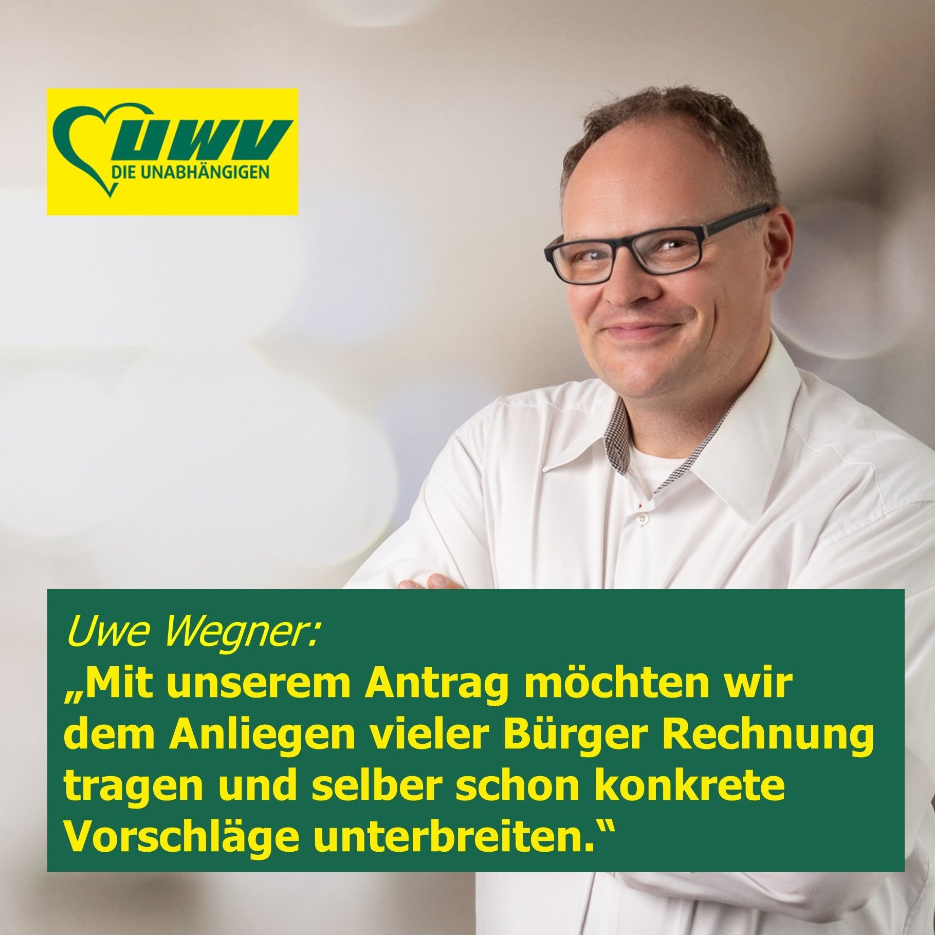 Uwe Wegner: „Wir wissen, dass dieses Thema auch schon einmal in den politischen Kreisen andiskutiert wurde, aber nie ernsthaft weiterverfolgt wurde. Mit unserem Antrag möchten wir daher dem Thema mehr Nachdruck verleihen, andererseits aber auch selber bereits konkrete Vorschläge unterbreiten.“