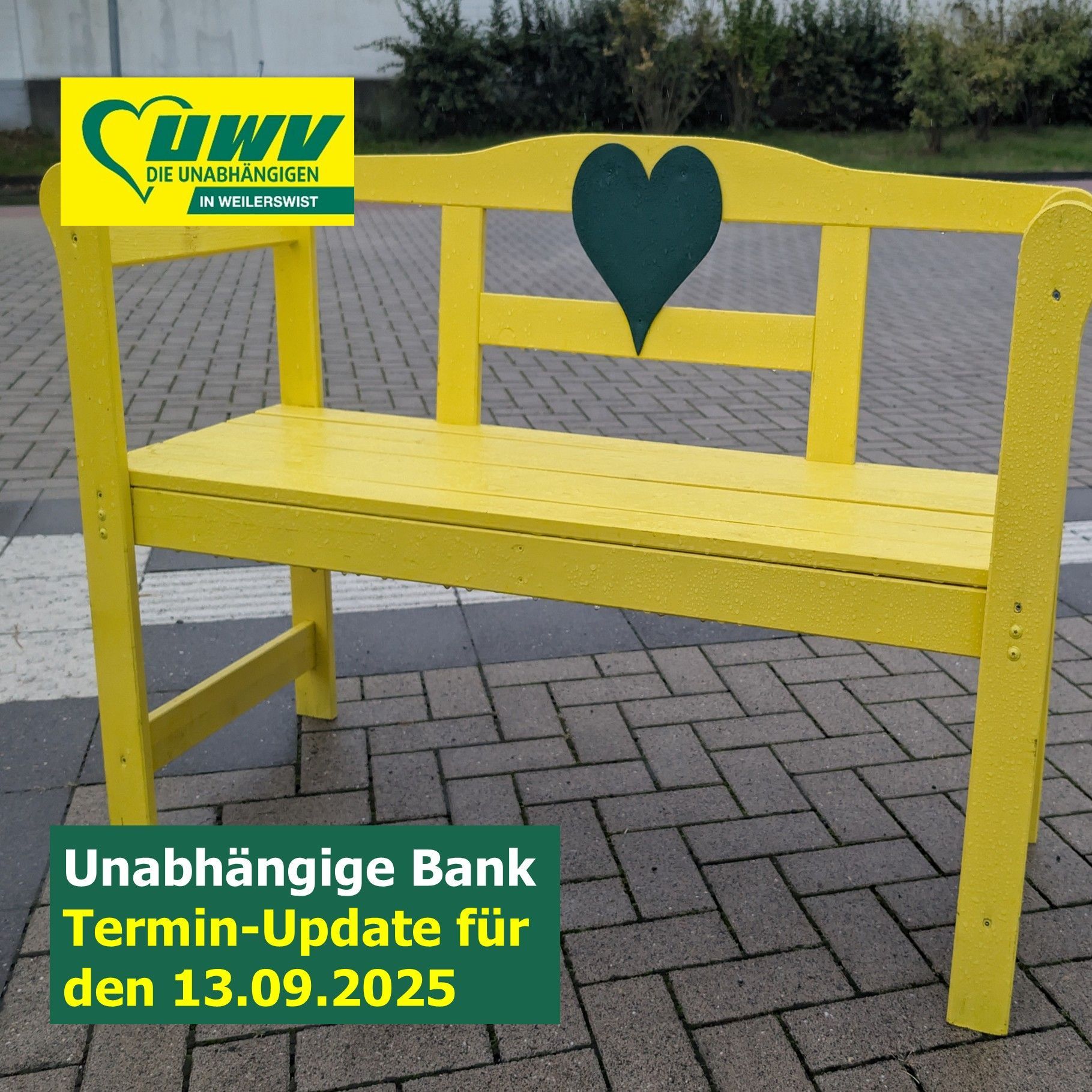 Die Unabhängige Wähler-Vereinigung (UWV) Weilerswist lädt alle Bürgerinnen und Bürger herzlich zum letzten Termin der „Unabhängigen Bank“ vor der Kommunalwahl ein:
