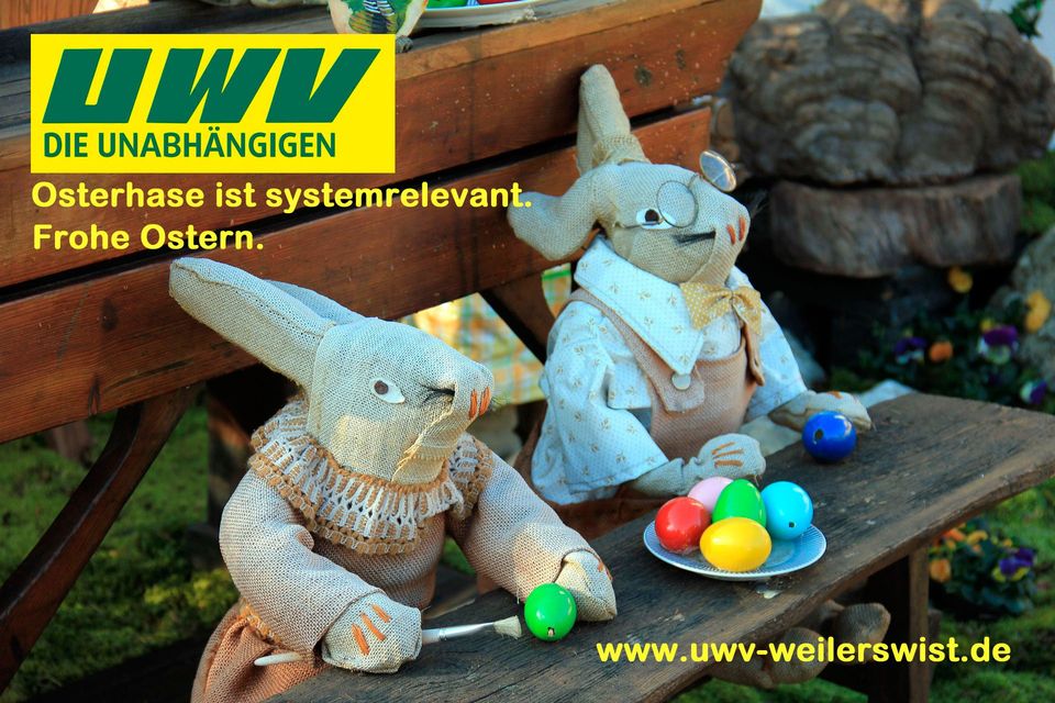 "Liebe Kinder, der Osterhase darf weiter seiner Arbeit nachgehen. Er muss sich zwar, wie ihr auch, an bestimmte Schutzvorgaben halten, aber er freut sich dennoch auf das jetzt bevorstehende Osterfest", so die UWV Weilerswist.