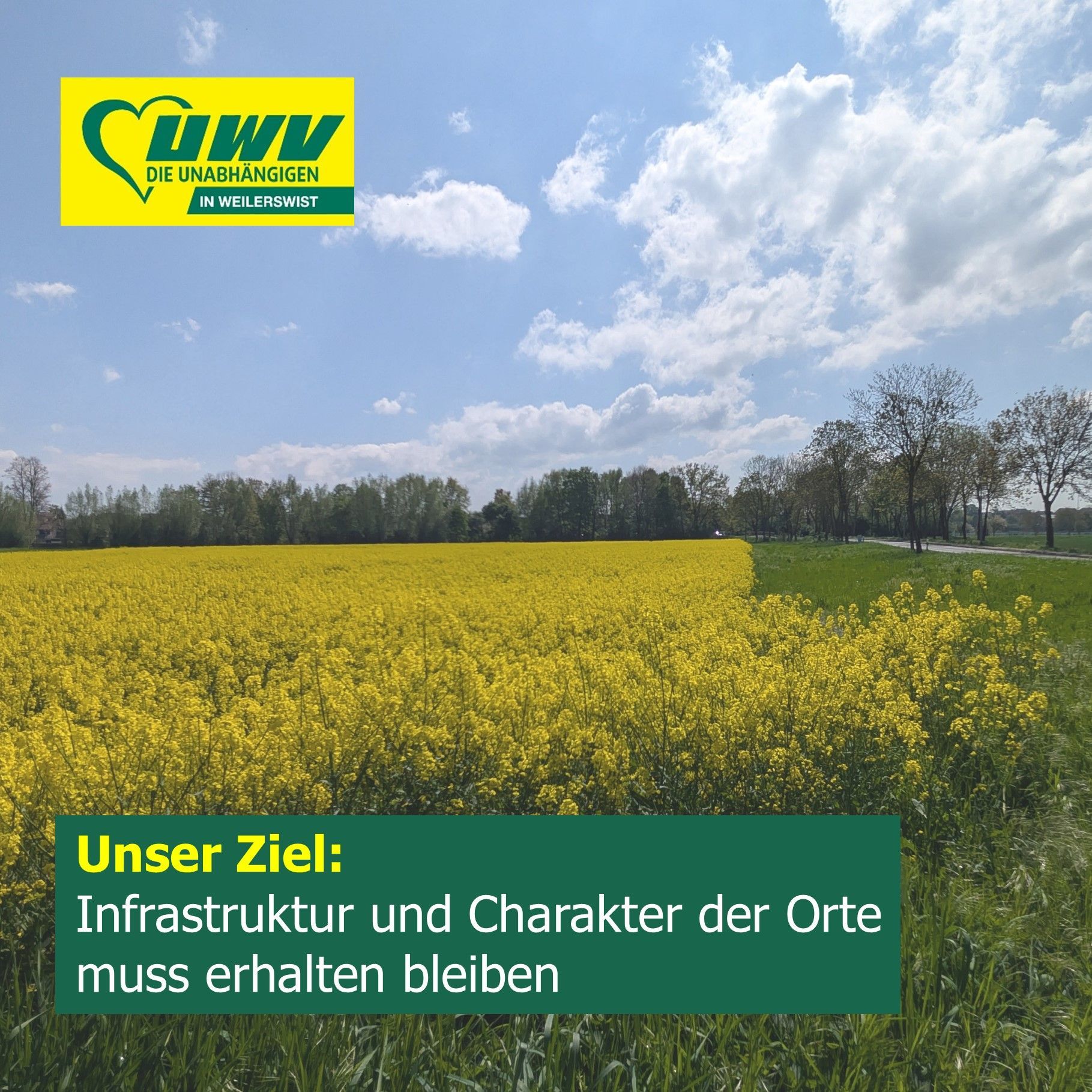 Es ist an der Zeit nun über unser Wahlprogramm 2025 zu informieren. Dies werden wir fortan Kapitel für Kapitel vorstellen. Heute starten wir mit der Einleitung unseres Programms: Vorwort Viele Menschen haben ihr Vertrauen in die kommunale Politik verloren. Das Klima in Rat und Verwaltung ist in Weilerswist weiterhin nicht das Beste. Rat und Verwaltung agieren zu selten geschlossen Seite an Seite. Das Verständnis von Transparenz und Vertrauen, für die UWV von besonderer Bedeutung, ist bei manchen handelnden Personen leider gering ausgeprägt. Dies führt insgesamt zu einer für uns deutlich wahrnehmbaren Resignation. Weiterhin haben unserer Überzeugung nach viele Bürgerinnen und Bürger den Wunsch nach weiteren Veränderungen in der Kommunalpolitik. Die UWV will Transparenz und Mitwirkungsmöglichkeiten für alle Bevölkerungsgruppen. Die Bürgerschaft darf nicht bei Entscheidungen und Diskussionen ausgeschlossen bleiben. Wir sind überzeugt: wir haben in unserer ersten Ratsperiode Veränderungen angestoßen. Mit einer noch stärkeren UWV wäre noch mehr möglich. Wir wollen Kommunalpolitik mit Herz für Weilerswist. Weilerswist steht zukünftig weiter vor großen Herausforderungen. Diesen möchten wir mit Leidenschaft und Gestaltungswillen begegnen. Die alten und neuen Herausforderungen wollen wir wie bisher sachlich und vorurteilsfrei analysieren und die richtigen Schritte einleiten. Gemeinsam wollen wir den Blick zum Wohle der gesamten Gemeinde nach vorne richten. Wir sind die Unabhängige Wähler-Vereinigung (UWV) Weilerswist, ein Zusammenschluss von Bürgerinnen und Bürgern, die sich auf kommunaler Ebene für die Belange der Weilerswister Bevölkerung einsetzen. Wir halten uns nicht für allwissend. Deswegen liegt uns viel daran unsere Ideen im Dialog mit den Menschen auszutauschen. Dabei interessiert uns die Meinung aller Bürgerinnen und Bürger. Schließlich bietet jede Anregung die Chance, einen Beitrag für ein besseres Weilerswist zu leisten. Wer - wie wir -Transparenz, Offenheit und Partizipation für alle Weilerswister möchte, ist herzlich eingeladen, den von uns eingeschlagenen Weg aktiv mitzugestalten. Nur gemeinsam können wir unsere Gemeinde weiter voranbringen und damit zukunftsfähig machen. Wir streben eine Form der Politik an, welche sich durch ergebnisoffene Diskussionen um die besten Ideen auszeichnet. Wir leben in einer Welt mit sich stetig verändernden Gegebenheiten. D as bedeutet für uns: es ist regelmäßig zu prüfen, ob die Ziele der Gemeinde noch zeitgemäß sind. Zudem ist die Frage zu stellen, ob wir nicht auch neue, kreative Wege gehen können und sollen. Gemeinsam mit den Bürgerinnen und Bürger möchten wir Ideen entwickeln. Bei Positionen anderer Fraktionen hinterfragen wir kritisch. Wir prüfen die Intentionen auf den Mehrwert für die Gemeinschaft. Wir leben gerne in Weilerswist. Alle Ortsteile prägen die Gemeinde ebenso wie die Natur. An Erft und Swist finden wir Erholung. Die einzelnen Ortschaften und die Natur sind einige der Stärken von Weilerswist. Ein weiterer Pluspunkt ist die verkehrsgünstige Lage. Neben den direkten Autobahnanschlüssen an die A 1 und A 61 sind nahegelegene Städte gut erreichbar. Der öffentliche Nahverkehr trägt hierzu mit bei: Innerhalb von 25 Minuten erreicht man den Kölner Hauptbahnhof. In der anderen Richtung ist man in 15 Minuten in der Kreisstadt Euskirchen. Bonn ist ebenfalls durch das Straßennetz und mit einem Umstieg mit der Deutschen Bahn erreichbar. Hieraus ergeben sich aus unserer Sicht Chancen für eine positive Entwicklung unserer Gemeinde. Diese könnte Weilerswist noch besser nutzen. Damit Weilerswist lebenswert bleibt, muss sich die Gemeinde in vielerlei Hinsicht weiterentwickeln. Dies kann nur mit einer starken Bürgerschaft und der breiten Beteiligung zahlreicher gesellschaftlicher Akteure - wie Vereine, Verbände und Ehrenamt - sowie einer starken und leistungsfähigen Verwaltung geschehen. Ein kompetenter und engagierter Rat ist hierfür ebenso entscheidend.