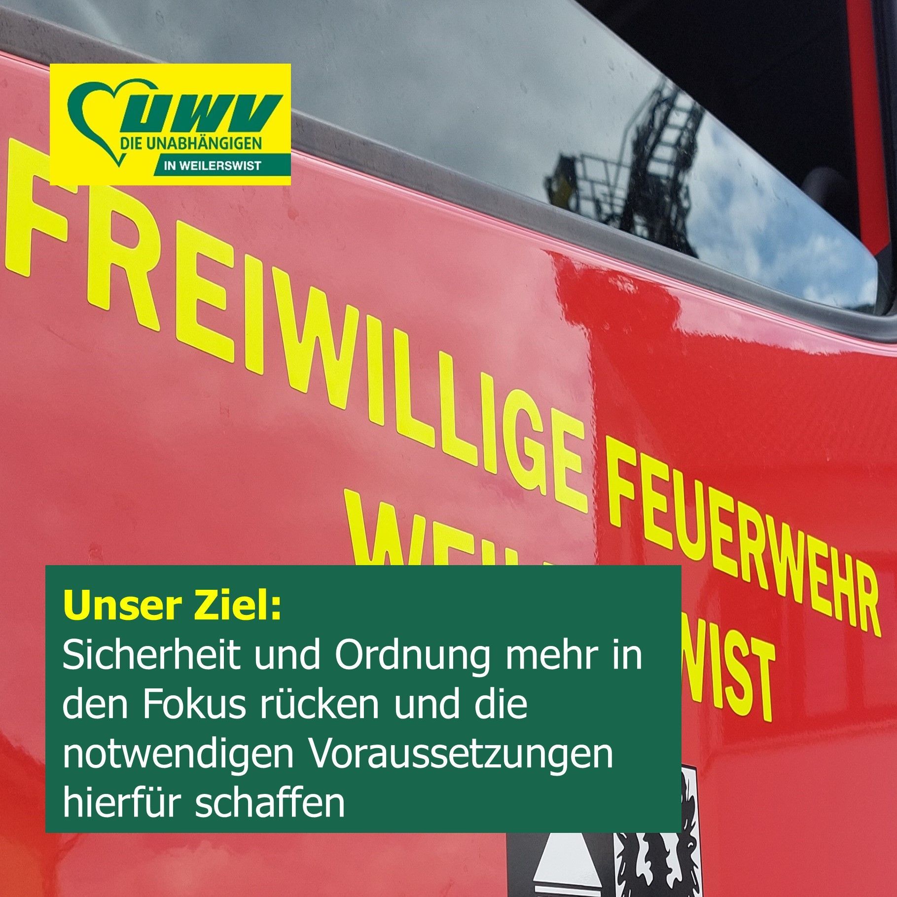 Heute werfen wir in unserem Wahlprogramm den Blick in den Themenschwerpunkt "Sicherheit und Ordnung": Wir setzen uns unter anderem ein für: Sicherheit und Ordnung, die mehr in den Fokus rückt die notwendigen Voraussetzungen hierfür schaffen Konkret / Im Einzelnen sagen wir in unserem Wahlprogramm: Dem allgemeinen Bedürfnis der Bevölkerung nach Sicherheit und Ordnung ist Rechnung zu tragen! Wir räumen ein, dass wir als Kommune keinen direkten Einfluss auf die Polizeipräsenz vor Ort haben. Dies schließt jedoch nicht aus, dass wir uns als Gemeinde bei den hierfür zuständigen Stellen einsetzen müssen. Unabhängig hiervon fängt Sicherheit und Ordnung auch schon im Kleinen an. Dafür bedarf es unserem Verständnis nach u. a. eines personell gut aufgestellten Ordnungsamtes, welches die ihm kraft Gesetzes zugewiesenen Aufgaben zur Beseitigung von Gefahren für die öffentliche Sicherheit oder Ordnung, erfüllen kann. Hier sehen wir weiterhin Potential durch eine verbesserte Verwaltungsorganisation und –Struktur. Dabei darf es nicht um den Aspekt gehen, mehr Knöllchen gegen Falschparker zu schreiben. Sicherheit und Ordnung umfasst mehr. Es geht um Bürgerservice, um die Beseitigung von Missständen, wie Ruhestörungen, Vorgehen gegen illegale Müllentsorgungen, die ordnungsgemäße Benutzung öffentlicher Einrichtungen (z. B. Spielplätzen), etc.; Einen ganz wesentlichen Anteil an einer sicheren Gemeinde hat unsere freiwillige Feuerwehr. Das Engagement der Kameraden in ihrer Freizeit ist einzigartig. Die Feuerwehr kann sich der Unterstützung der UWV sicher sein. Die Ausstattung der Feuerwehr war, ist und bleibt uns eine Herzensangelegenheit .