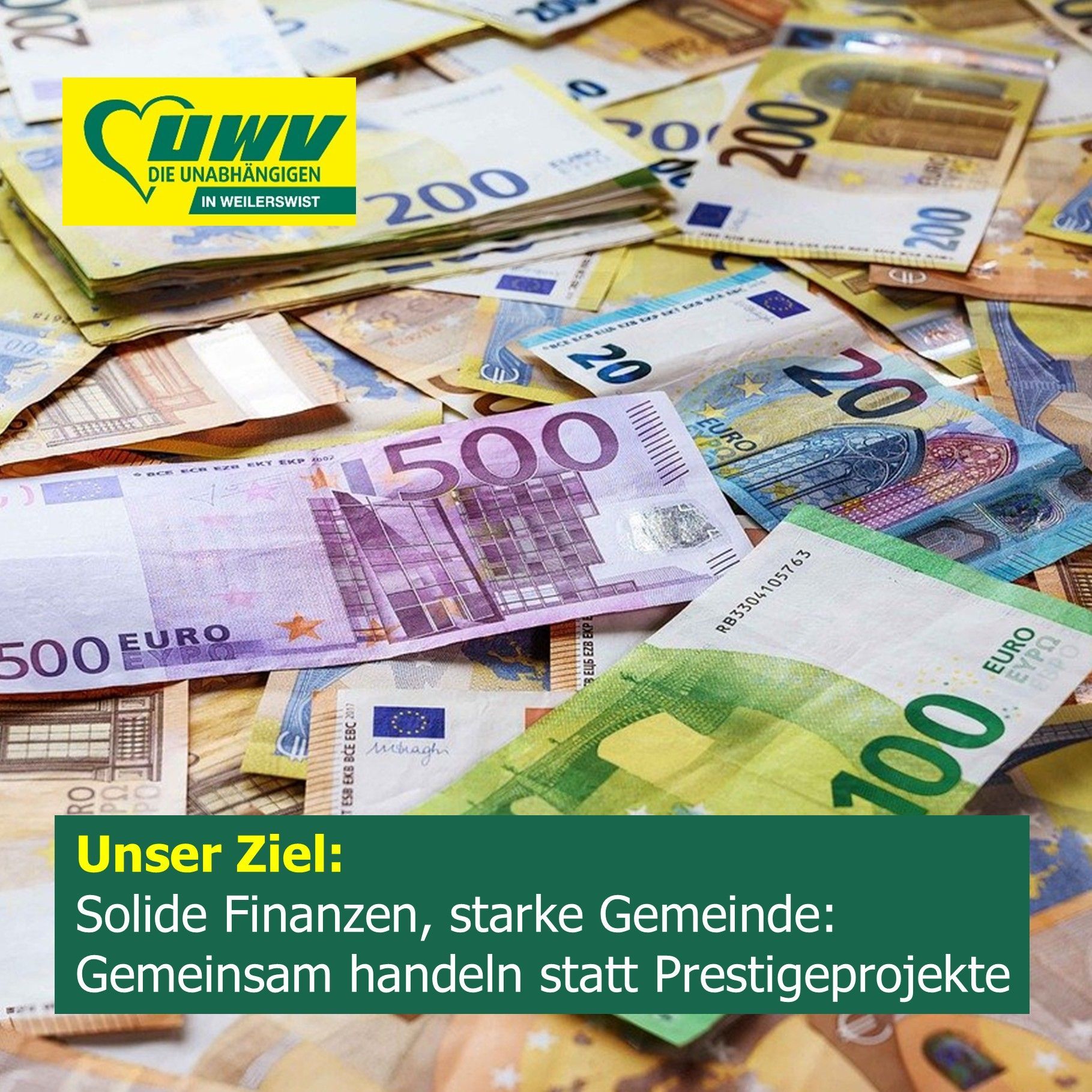 Heute werfen wir in unserem Wahlprogramm den Blick in den Themenschwerpunkt "Finanzen": Wir sind wir der Auffassung: Etablierte Konzepte neu denken Interkommunale Zusammenarbeit, Fördermittel und die Chance auf Einnahmen Fördermittel sind kein Motor für Prestigeprojekte Unterfinanzierung: Mangelhaft finanzielle Ausstattung der Kommunen durch Bund und Länder Konkret / Im Einzelnen sagen wir in unserem Wahlprogramm: Die Gemeinde muss zur Erfüllung ihrer Aufgaben finanziell gut aufgestellt sein. Eine verantwortungsvolle Haushaltspolitik muss zentraler Bestandteil allem gemeindlichen Handelns sein. Stärkung des Einzelhandels unter Einbindung der Gewerbetreibenden. Die Einnahmesituation der Gemeinde muss und kann verbessert werden. Generell gilt es im Rahmen interkommunaler Zusammenarbeit wirtschaftlich sinnvolle Perspektiven zu entwickeln. Der Einzelhandel benötigt in der Gemeinde eine Stärkung. Es müssen mit den ortsansässigen Einzelhändlern gemeinsam Lösungsansätze entwickelt werden: „Welche Rahmenbedingungen müssen aus Sicht der ortsansässigen Gewerbetreibenden geschaffen werden, damit Standorte erhalten, Leerstände von Ladenlokalen verhindert und im Idealfall gar beseitigt werden?“ Aufgrund der hohen Anzahl an Discountern sollte ein Schwerpunkt des Wirtschaftsförderers darin liegen, die Ansiedlung von Spezial- bzw. Fachgeschäften voranzutreiben. Hierzu können wir uns eine Initiative mit den ortsansässigen Händlern unter Einbeziehung der Eigentümer von Ladenlokalen als einen ersten wichtigen Schritt vorstellen. Nicht außer Acht gelassen werden darf ein weiterer Fakt: Auswärtige kaufen ebenfalls in Weilerswist ein - gerade aus dem südlichen Bereich Erftstadts sowie dem nahegelegenen Rhein-Sieg-Kreis. Dies bietet eine Chance für unseren Handel vor Ort! Etablierte Konzepte neu denken Wir bleiben dabei: die PrimeSite Rhine Region muss überdacht, neu aufgestellt und ausgerichtet werden. Dies sehen mittlerweile wohl auch die etablierten Parteien so. Absagen von großen Unternehmen wie z. B. Tesla haben gezeigt, dass sich die einst ambitionierten Ziele offenkundig nicht realisieren lassen. Interkommunale Zusammenarbeit, Fördermittel und die Chance auf Einnahmen Eine Chance auf weitere Einnahmen bieten Fördermittel. Hier gibt es zahlreiche Möglichkeiten durch Land, Bund und EU anfallende Kosten zu refinanzieren. Weilerswist sollte daher im Kreis auf die Einrichtung einer Koordinationsstelle zum optimalen Abruf von Fördergeldern aus Bund, Land und EU drängen. Das Wissen um die Möglichkeiten der verschiedenen Fördertöpfe kann unserer Auffassung nach nicht von einer kleinen Verwaltung wie der Gemeinde Weilerswist allein geleistet werden. Hier bietet sich ebenfalls eine interkommunale Zusammenarbeit an. Durch die erfolgreiche Vermarktung des Baugebietes Weilerswist-Süd hat sich gezeigt, dass der Bedarf an finanzierbarem Wohnraum und preislich akzeptablen Grundstücken vorhanden ist. Aus dem gesamten Umland sind Familien nach Weilerswist gekommen. Deren Zuzug bietet große Chancen. Auch heute noch ist das Interesse an Baugrundstücken in unserer Gemeinde groß. Zukünftig sind daher Bauflächen in Weilerswist auszuweisen. Zu prüfen ist, ob zur Steigerung der Einnahmen die Vermarktung künftig nicht sinnvollerweise selber durch die Gemeinde, anstatt durch Dritte wie der DSK, erfolgen sollte Auf der anderen Seite müssen leider auch Maßnahmen zur Begrenzung der Ausgaben erfolgen. Fördermittel sind kein Motor für Prestigeprojekte Bestehende und zukünftige Projekte, die von Rat und Verwaltung initiiert werden, müssen strengen und transparenten Kostenkalkulationen genügen. Darunter sind verlässliche Wirtschaftlichkeitsuntersuchungen unter Berücksichtigung aller Folgekosten, wie zum Beispiel Kosten der Finanzierung, der Pflege sowie des Betriebs zu verstehen. Ebenso sind sog. Umweltfolgekosten zu betrachten. Diese Gesamtkalkulationen wollen wir, soweit es jeweils rechtlich zulässig ist, in besonderer Weise öffentlich bekannt machen. Nur so kann in der Bürgerschaft Vertrauen in Rat und Verwaltung zurückgewonnen und neu entwickelt werden. Es ist auch zu prüfen, ob und wo sich durch den Einsatz moderner Verbrauchsgeräte (Laternen, Lampen und sonstige Elektrogeräte in öffentlichen Gebäuden) Energieeinsparungen erzielen lassen. Unterfinanzierung: Mangelhaft finanzielle Ausstattung der Kommunen durch Bund und Länder Problem aller Gemeinden ist die kommunale Unterfinanzierung. Sie lässt sich nur gemeinsam lösen. Eine umfassende Reform der Kommunalfinanzen ist weiterhin dringend erforderlich. Kommunen müssen weiter in der Lage sein, ihre Haushalte zu sanieren und dabei notwendige Investitionen tätigen zu können. Rat und Verwaltung müssen sich daher auf höheren Ebenen deutlicher hierfür einsetzen. Das oft zitierte Konnexitätsprinzip muss Grundlage aller Entscheidungen sein: „Wer bestellt muss zahlen“. Bund und Land müssen die Kommunen finanziell so ausstatten, dass sie die von ihnen zugewiesenen Aufgaben und Ausgaben auch ausführen können. Wir bedauern, dass die etablierten Parteien sich auf kommunaler Ebene hierfür zwar mit aussprechen, aber ihre höheren Ebenen und Vertreterinnen und Vertreter nicht davon überzeugen können. Wechselseitig, je nach Mehrheiten, wird die Schuld stets den anderen Handelnden zugeschrieben anstatt nachhaltig das Thema zu verfolgen. Unserer Vorstellung nach sollte die Verwaltung ihre Praxis bei Vergaben, insbesondere bei öffentlichen Ausschreibungen, überprüfen. Unter dem Vorsitz der UWV hat der Rechnungsprüfungsausschuss einstimmig die Verwaltung beauftragt die Vergabeordnung zu überarbeiten. Nach unserer Überzeugung sollte ebenfalls klar geregelt werden, dass Firmen bei Schlecht- oder Nichterfüllung stärker in die Verantwortung genommen werden. Klare Kürzungen bei Zeitverzug sollen stringenter geprüft und vollzogen werden. Unsere Vorstellung ist, dass perspektivisch bei Auftragsvergaben ein Bonus-Mal