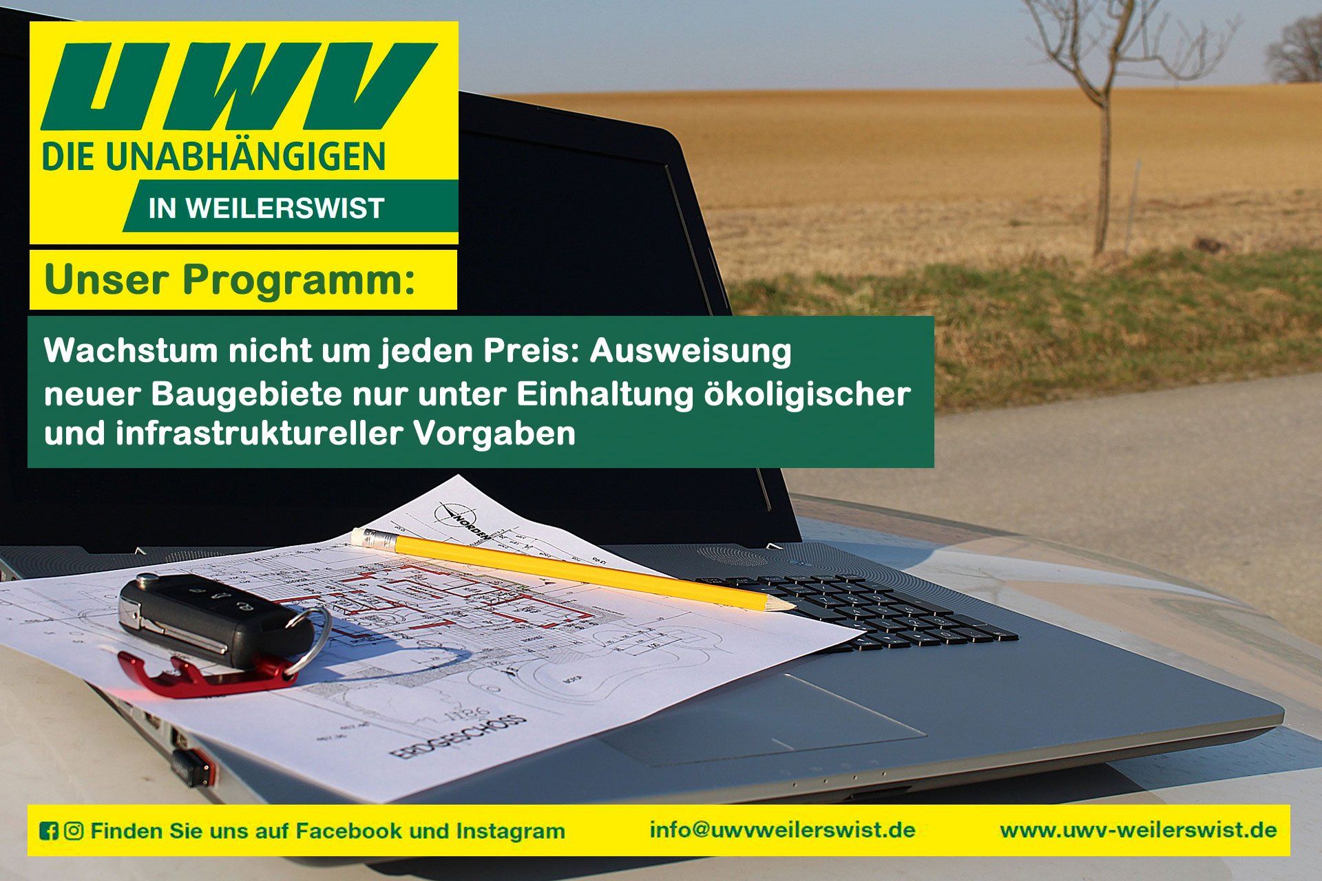 Heute werfen wir in unserem Wahlprogramm den Blick in den Themenschwerpunkt Wohnen und Leben: Unsere Region wird auch in der Zukunft weiterwachsen. Unsere Gemeinde wird weiterhin im Wettbewerb um Einwohner stehen. Wir setzen uns unter anderem ein für: • Wohnen muss bezahlbar sein • Infrastruktur und Charakter der Orte muss erhalten bleiben • Grundstücksvergabe mit fairem System • Wir möchten die Entstehung von Wohnraum für Studenten unterstützen • Wir fordern Bedarfsanalysen für Neubauprojekte und vorhanden Infrastruktur Konkret / Im Einzelnen sagen wir hierzu in unserem Wahlprogramm: Wohnen muss bezahlbar sein Es müssen in den Neubaugebieten gemischte Wohnstrukturen angestrebt werden: von der Mietwohnung, der Eigentumswohnung bis hin zu altersgerechten Wohnungen. Vor allem benötigen wir jedoch mehr bezahlbaren Wohnraum. Hier gibt es aus unserer Sicht dringenden Handlungsbedarf. Dementsprechend werden wir prüfen lassen, ob die Möglichkeit zur Gründung einer eigenen Wohnungsbaugesellschaft für Weilerswist besteht oder aber eine Erhöhung der Anteile an der Wohnungsbaugesellschaft Eugebau möglich ist. Damit mehr entsteht, streben wir einen Anteil von 30 Prozent für diese Wohnform bei der Ausweisung neuer Baugebiete an. Infrastruktur und Charakter der Orte muss erhalten bleiben Wichtig bei aller Entwicklung ist jedoch, dass der typische Charakter aller Ortsteile erhalten bleibt. Dies ist es, was Weilerswist ausmacht. Jeder Ortsteil hat seinen eigenen Charakter und sollte diesen als eigene Identität schätzen und bewahren können. Bei aller Entwicklung ist zudem stets im Blick zu behalten, dass die notwendige Infrastruktur vorhanden ist oder ausgebaut wird, dass z. B. ausreichende Plätze in Kindertagesstätten und Schulen geschaffen werden. Bei neuen Erschließungen dürfen keine neuen Verkehrsprobleme entstehen. Grundstücksvergabe mit fairem System Insbesondere Familien müssen – neben dem staatlich geförderten Wohnungsbau - die Chance erhalten, sich den Wunsch nach Eigentum zu erfüllen. Ein Ansatz ist es bei der Vergabe von Grundstücken ein Punktesystem zu etablieren, wonach verschiedene Ansätze bei der Bewerbung für ein Baugrundstück bewertet werden. Beispielsweise könnte dieses so gestaltet sein, dass eine in Weilerswist ansässige Familie mit zwei Kindern und der Absicht ein außerordentlich energiesparendes Haus zu errichten eine höhere Bewertung erhält als eine Einzelperson von auswärts, die ein Haus ohne besondere ökologische Anforderungen bauen möchte. Für das noch immer nicht vermarktete Baugebiet Derkum-Hausweiler-Ottenheim haben wir bereits einen Erfolg erzielen können. Die vermarktende Firma DSK muss hierfür einen entsprechenden Kriterienkatalog erstellen. Wir möchten die Entstehung von Wohnraum für Studenten unterstützen Wir wollen zudem, dass in unserer Gemeinde Wohnmöglichkeiten für Studierende entstehen. Die gute Bahnverbindung nach Köln schafft hier die besten Anbindungsmöglichkeiten. Dort In Köln ist für diese der Wohnraum knapp und zudem auch preislich für die meisten Studierenden nicht mehr tragbar. Hier könnte sich Weilerswist zu einer ernsten Alternative entwickeln. Wir fordern Bedarfsanalysen für Neubauprojekte und vorhandener Infrastruktur Für die Gesamtentwicklung unserer Gemeinde ist eine klare Analyse notwendig, welche Bedarfe wann entstehen und ggfls. wieder abnehmen. Geprüft werden sollte daher in diesem Zusammenhang, ob es nicht möglich ist, zukünftig notwendige Neubauprojekte in der Gestalt zu planen, dass sich diese dann jeweils mit geringem Aufwand in ihrer Funktion anpassen lassen (z.B.: gestern Kindertagesstätte - heute Jugendzentrum - morgen Seniorentreff). Wir wollen zudem eine klare Überprüfung der vorhandenen Infrastruktur. Hier muss eine Planung entstehen, welche Investitionen wann und wo anfallen, wie z. B. der Austausch von Heizanlagen in öffentlichen Gebäuden, Sanierung von Straßen oder Gebäuden. Die Kommunalagentur hatte in diesem Zusammenhang der Gemeinde vor Jahren ein Straßenkataster vorgeschlagen. Die Erstellung dieses Straßenzustandsberichtes wurde mit unserer Mitwirkung beschlossen. Die Auslesung der digitalen Daten beschäftigte die Gemeinde mehrere Jahre. Bis heute ist leider keine hierauf basierende, tragfähige Priorisierung der dringend notwendigen Straßensanierungen vorgenommen worden. Wir wollen und werden unseren Druck diesbezüglich mit einer starken UWV erhöhen.