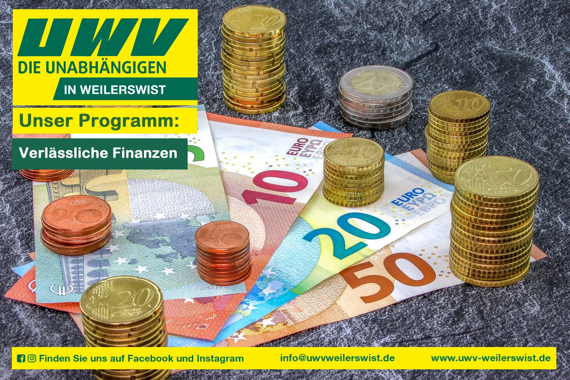 Heute werfen wir in unserem Wahlprogramm den Blick in den Themenschwerpunkt "Finanzen": Wir sind wir der Auffassung: Etablierte Konzepte neu denken Interkommunale Zusammenarbeit, Fördermittel und die Chance auf Einnahmen Fördermittel sind kein Motor für Prestigeprojekte Unterfinanzierung: Mangelhaft finanzielle Ausstattung der Kommunen durch Bund und Länder Konkret / Im Einzelnen sagen wir in unserem Wahlprogramm: Die Gemeinde muss zur Erfüllung ihrer Aufgaben finanziell gut aufgestellt sein. Eine verantwortungsvolle Haushaltspolitik muss zentraler Bestandteil allem gemeindlichen Handelns sein. Stärkung des Einzelhandels unter Einbindung der Gewerbetreibenden. Die Einnahmesituation der Gemeinde muss und kann verbessert werden. Generell gilt es im Rahmen interkommunaler Zusammenarbeit wirtschaftlich sinnvolle Perspektiven zu entwickeln. Der Einzelhandel benötigt in der Gemeinde eine Stärkung. Es müssen mit den ortsansässigen Einzelhändlern gemeinsam Lösungsansätze entwickelt werden: „Welche Rahmenbedingungen müssen aus Sicht der ortsansässigen Gewerbetreibenden geschaffen werden, damit Standorte erhalten, Leerstände von Ladenlokalen verhindert und im Idealfall gar beseitigt werden?“ Aufgrund der hohen Anzahl an Discountern sollte ein Schwerpunkt des Wirtschaftsförderers darin liegen, die Ansiedlung von Spezial- bzw. Fachgeschäften voranzutreiben. Hierzu können wir uns eine Initiative mit den ortsansässigen Händlern unter Einbeziehung der Eigentümer von Ladenlokalen als einen ersten wichtigen Schritt vorstellen. Nicht außer Acht gelassen werden darf ein weiterer Fakt: Auswärtige kaufen ebenfalls in Weilerswist ein - gerade aus dem südlichen Bereich Erftstadts sowie dem nahegelegenen Rhein-Sieg-Kreis. Dies bietet eine Chance für unseren Handel vor Ort! Etablierte Konzepte neu denken Wir bleiben dabei: die PrimeSite Rhine Region muss überdacht, neu aufgestellt und ausgerichtet werden. Dies sehen mittlerweile wohl auch die etablierten Parteien so. Absagen von großen Unternehmen wie z. B. Tesla haben gezeigt, dass sich die einst ambitionierten Ziele offenkundig nicht realisieren lassen. Interkommunale Zusammenarbeit, Fördermittel und die Chance auf Einnahmen Eine Chance auf weitere Einnahmen bieten Fördermittel. Hier gibt es zahlreiche Möglichkeiten durch Land, Bund und EU anfallende Kosten zu refinanzieren. Weilerswist sollte daher im Kreis auf die Einrichtung einer Koordinationsstelle zum optimalen Abruf von Fördergeldern aus Bund, Land und EU drängen. Das Wissen um die Möglichkeiten der verschiedenen Fördertöpfe kann unserer Auffassung nach nicht von einer kleinen Verwaltung wie der Gemeinde Weilerswist allein geleistet werden. Hier bietet sich ebenfalls eine interkommunale Zusammenarbeit an. Durch die erfolgreiche Vermarktung des Baugebietes Weilerswist-Süd hat sich gezeigt, dass der Bedarf an finanzierbarem Wohnraum und preislich akzeptablen Grundstücken vorhanden ist. Aus dem gesamten Umland sind Familien nach Weilerswist gekommen. Deren Zuzug bietet große Chancen. Auch heute noch ist das Interesse an Baugrundstücken in unserer Gemeinde groß. Zukünftig sind daher Bauflächen in Weilerswist auszuweisen. Zu prüfen ist, ob zur Steigerung der Einnahmen die Vermarktung künftig nicht sinnvollerweise selber durch die Gemeinde, anstatt durch Dritte wie der DSK, erfolgen sollte Auf der anderen Seite müssen leider auch Maßnahmen zur Begrenzung der Ausgaben erfolgen. Fördermittel sind kein Motor für Prestigeprojekte Bestehende und zukünftige Projekte, die von Rat und Verwaltung initiiert werden, müssen strengen und transparenten Kostenkalkulationen genügen. Darunter sind verlässliche Wirtschaftlichkeitsuntersuchungen unter Berücksichtigung aller Folgekosten, wie zum Beispiel Kosten der Finanzierung, der Pflege sowie des Betriebs zu verstehen. Ebenso sind sog. Umweltfolgekosten zu betrachten. Diese Gesamtkalkulationen wollen wir, soweit es jeweils rechtlich zulässig ist, in besonderer Weise öffentlich bekannt machen. Nur so kann in der Bürgerschaft Vertrauen in Rat und Verwaltung zurückgewonnen und neu entwickelt werden. Es ist auch zu prüfen, ob und wo sich durch den Einsatz moderner Verbrauchsgeräte (Laternen, Lampen und sonstige Elektrogeräte in öffentlichen Gebäuden) Energieeinsparungen erzielen lassen. Unterfinanzierung: Mangelhaft finanzielle Ausstattung der Kommunen durch Bund und Länder Problem aller Gemeinden ist die kommunale Unterfinanzierung. Sie lässt sich nur gemeinsam lösen. Eine umfassende Reform der Kommunalfinanzen ist weiterhin dringend erforderlich. Kommunen müssen weiter in der Lage sein, ihre Haushalte zu sanieren und dabei notwendige Investitionen tätigen zu können. Rat und Verwaltung müssen sich daher auf höheren Ebenen deutlicher hierfür einsetzen. Das oft zitierte Konnexitätsprinzip muss Grundlage aller Entscheidungen sein: „Wer bestellt muss zahlen“. Bund und Land müssen die Kommunen finanziell so ausstatten, dass sie die von ihnen zugewiesenen Aufgaben und Ausgaben auch ausführen können. Wir bedauern, dass die etablierten Parteien sich auf kommunaler Ebene hierfür zwar mit aussprechen, aber ihre höheren Ebenen und Vertreterinnen und Vertreter nicht davon überzeugen können. Wechselseitig, je nach Mehrheiten, wird die Schuld stets den anderen Handelnden zugeschrieben anstatt nachhaltig das Thema zu verfolgen. Unserer Vorstellung nach sollte die Verwaltung ihre Praxis bei Vergaben, insbesondere bei öffentlichen Ausschreibungen, überprüfen. Unter dem Vorsitz der UWV hat der Rechnungsprüfungsausschuss einstimmig die Verwaltung beauftragt die Vergabeordnung zu überarbeiten. Nach unserer Überzeugung sollte ebenfalls klar geregelt werden, dass Firmen bei Schlecht- oder Nichterfüllung stärker in die Verantwortung genommen werden. Klare Kürzungen bei Zeitverzug sollen stringenter geprüft und vollzogen werden. Unsere Vorstellung ist, dass perspektivisch bei Auftragsvergaben ein Bonus-Mal