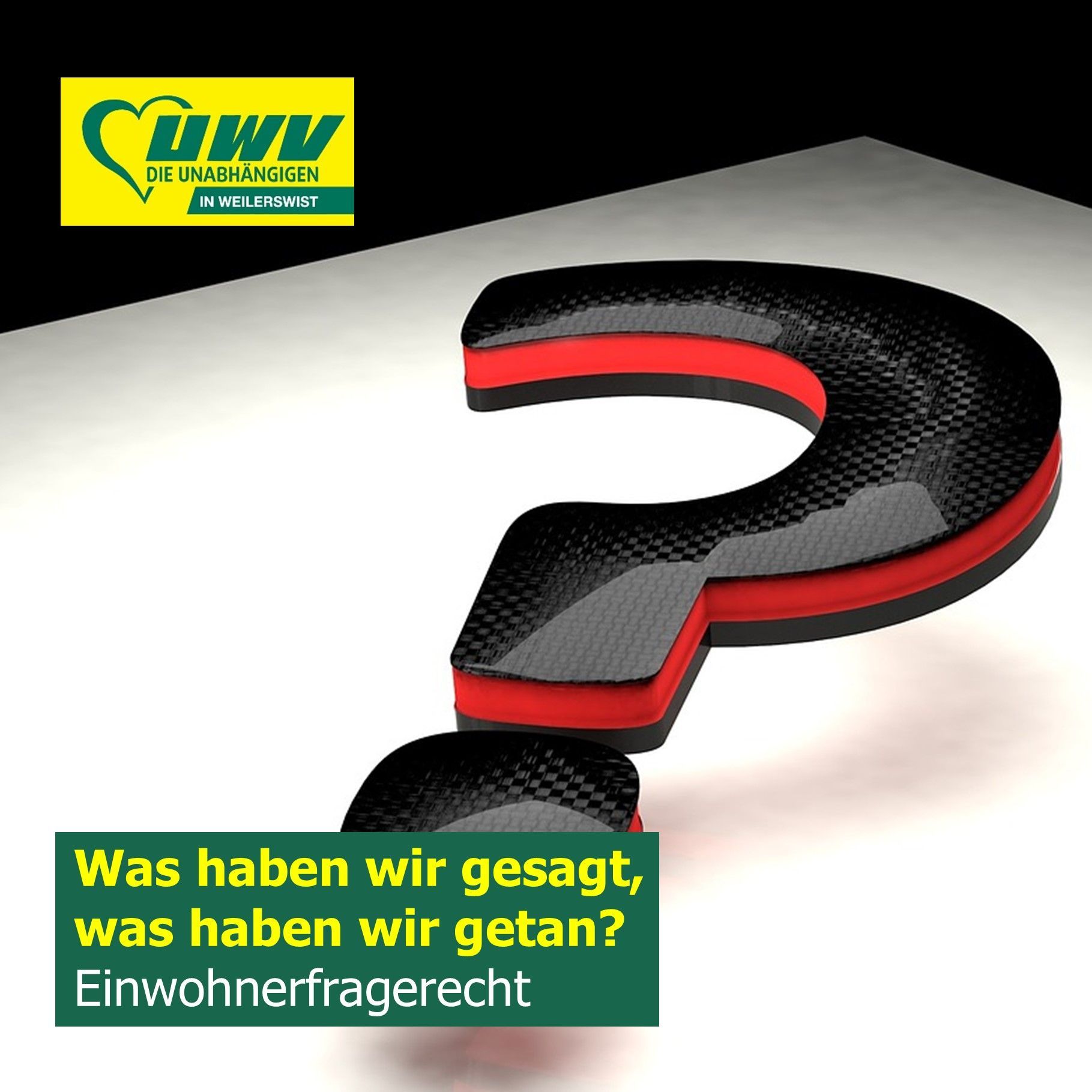 blicken wir auf Beteiligungsmöglichkeiten für die Bürgerinnen und Bürger. Für uns als UWV ein ganz wichtiger Aspekt. Heute betrachten wir hier den Teilaspekt der „Einwohnerfragestunden“.