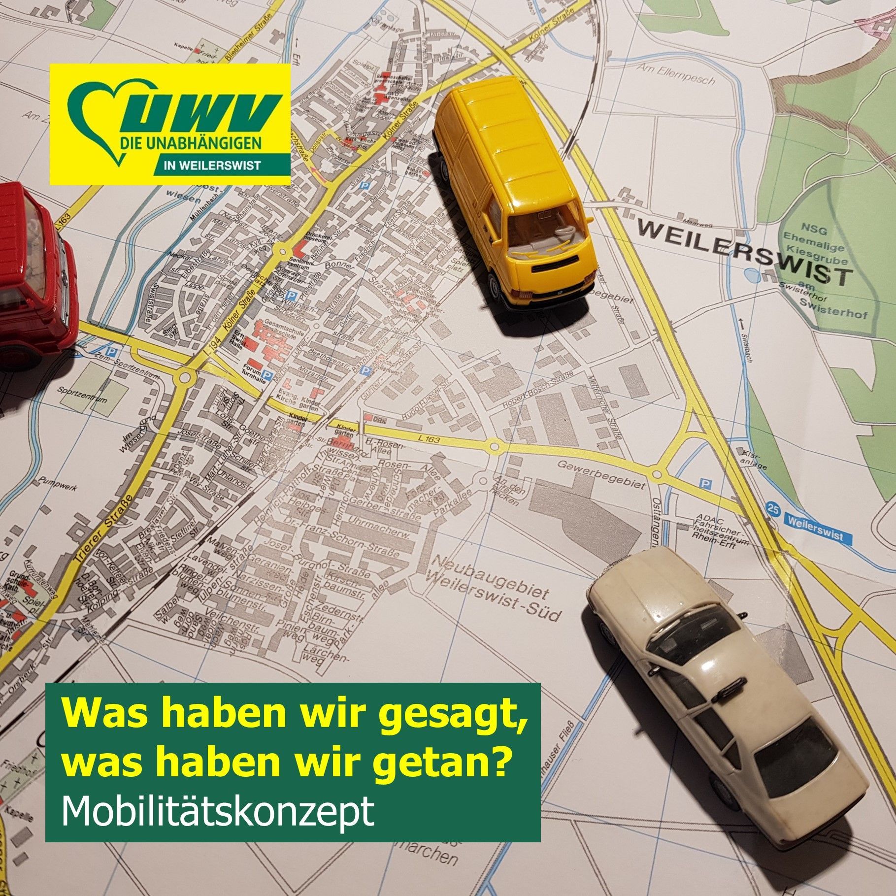 Die UWV sagt: So geht das nicht weiter. Wir haben den Antrag damals gestellt, weil wir gesehen haben, dass es nicht reicht, hier ein Verkehrsschild zu versetzen und dort einen Radweg zu flicken. Wir brauchen ein Gesamtkonzept für Weilerswist – für alle Ortsteile, alle Verkehrsteilnehmerinnen und -teilnehmer sowie alle Lebens- und Orstlagen.